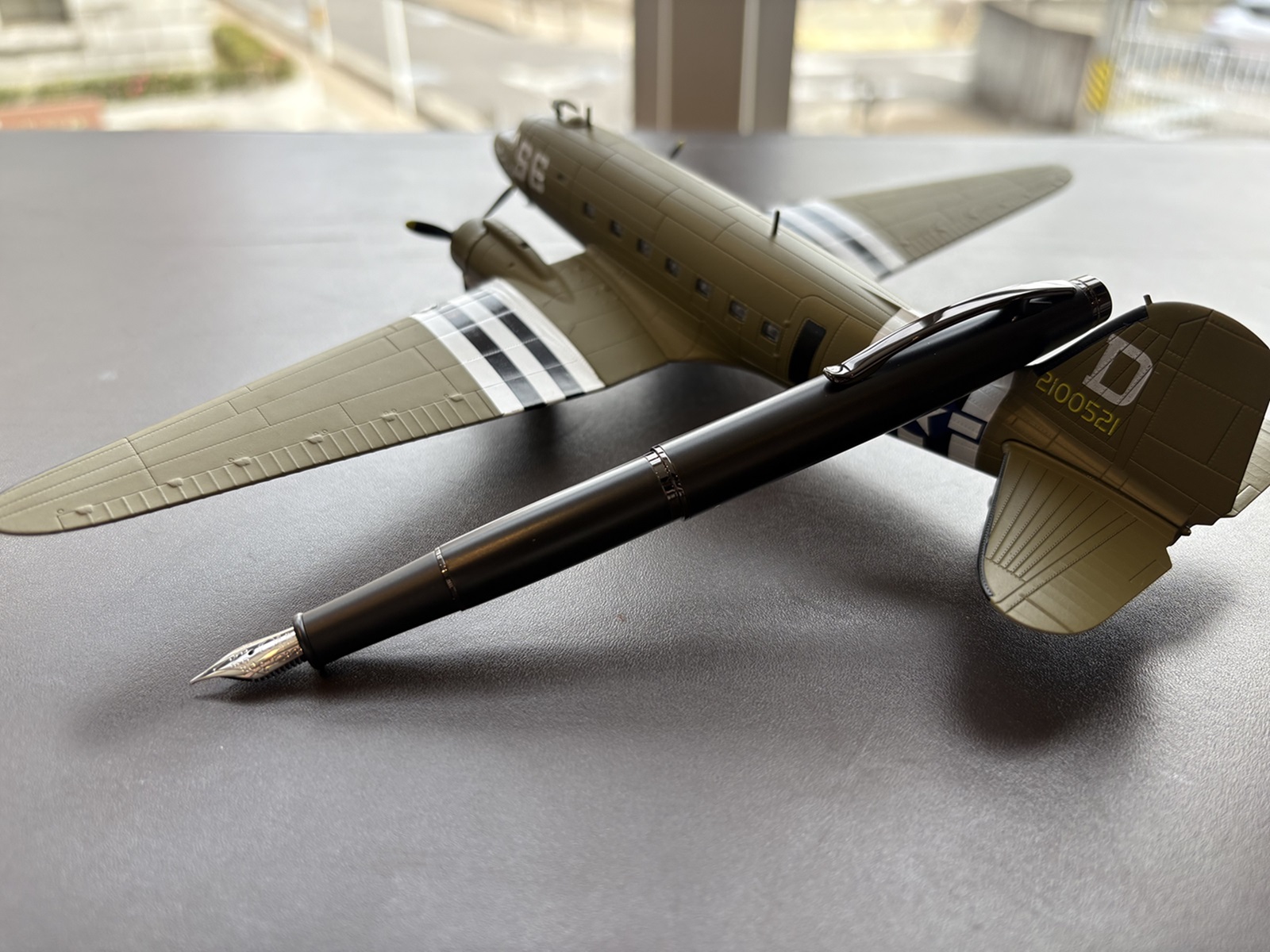 第二次世界大戦時に輸送機として運用され、「スカイトレイン」の愛称でも知られるダグラス社製の飛行機「C-47 ダコタ」にインスパイアされたそのデザインは、航空機の持つ流線型の機能美を見事に表現しています。また「スリップ-イン キャップ」と銘打ったキャップ部分も特徴的で、精緻な設計により滑空するかのごとくスムースな着脱を実現しています。
